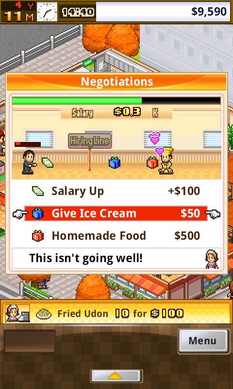 Decide every detail of the floor from tables to TVs and do whatever it takes to make your customers happy! After all, their ratings determine whether you're chef...or sap. Score enough points and you'll be able to host a variety of fun events from eating contests to cooking classes, further boosting your popularity!