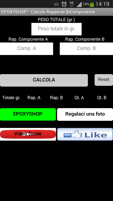 Inserisci il quantitativo desiderato, il rapporto tra i due componenti e avrai le quantità da utilizzare per ogni componente.
