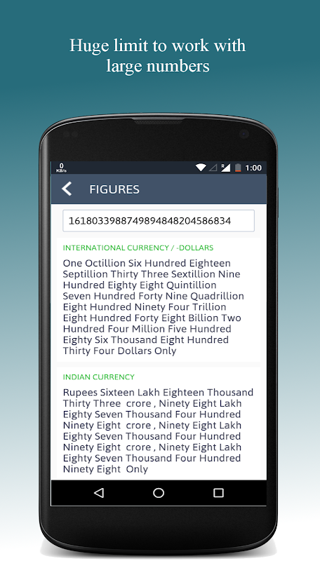 This simple calculator helps a user calculate in words. The result is displayed in numbers and the same is shown in words which helps reduction of errors while doing complex calculations.