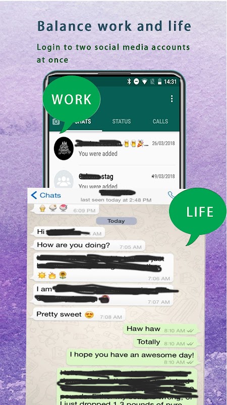 • Run two accounts simultaneously and switch between them fast with one-tap to effective manage different accounts.
