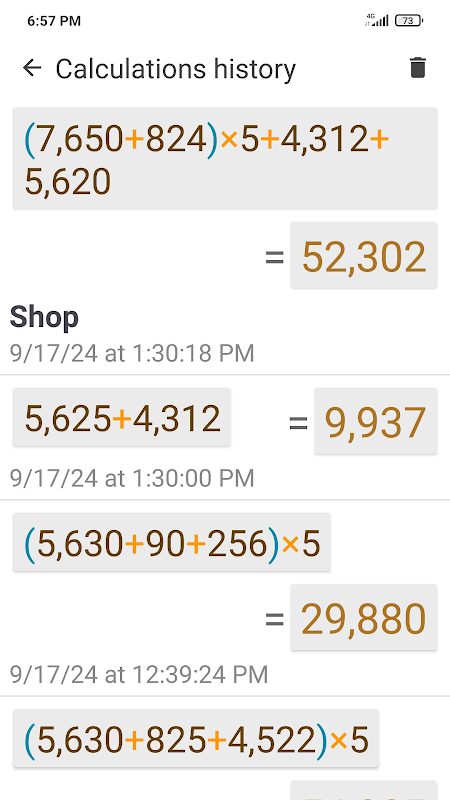 ✓ All calculations are recorded in the calculations history, from where you can insert the expression and result into the editor. These records can be instantly deleted with a horizontal swipe. Any record from the history can be tagged with text by tapping the date or time.