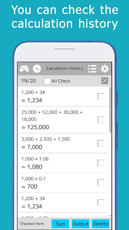 · By using the check box on the history screen, you can calculate the total value of answers