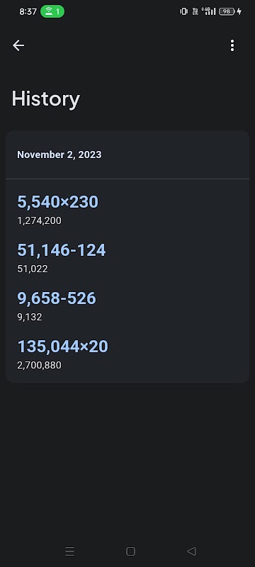 3. Calculation History: Calculator Pro keeps a complete history of your calculations, allowing you to review and reuse previous results. This is perfect for tracking your work and ensuring accuracy in your calculations.