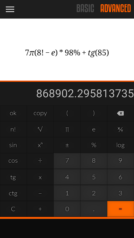 Precise, free, every day use calculator with scientific features. Good for simple and advanced calculations!