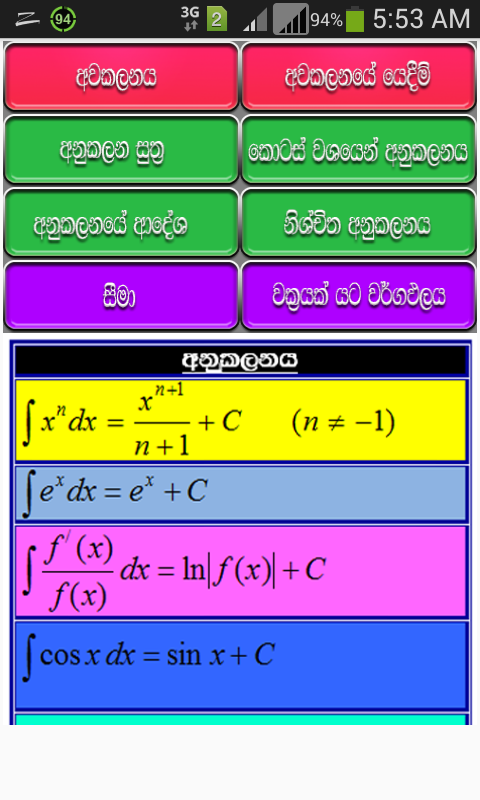 Equations for calculus in Sinhala
