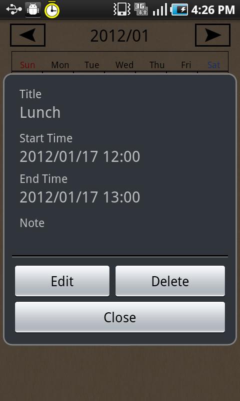 ①Tap-hold on the date you want in calendar to input schedule reminder in it.