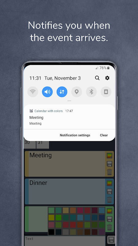 Receive reminders on event days without any annoying sounds.
