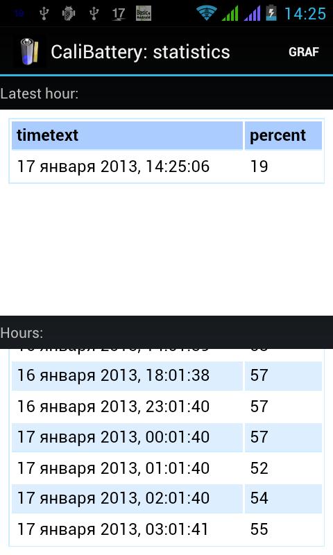* Experimental new function (paid option) - battery quality analysis (the possibility to bear the voltage drop at high load): switch the option on in the SETTINGS menu - the saving of charge and discharge stat (if no charger plugged in) will start. Use device several hours or days. STATISTICS menu can show the charts and analysis result, if battery quality evaluation is > 60% it's good, else the battery looks loosing its capacity.