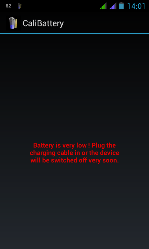 Alarm minimal charge level is 40%, it is 5% after the registration (in-app billing payment by Google Wallet).