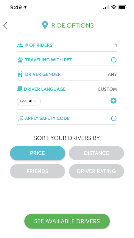 As a rider, you've been waiting... for options, to feel safer, to be in control. At CAR we feel strongly that riders are the life blood of any ride sharing service and you need just as many options as the drivers and even more importantly, that you feel safe. CAR completes security checks on all our drivers and offers tons of options for you to get the best fit for your ride needs: what type of vehicle you'd like, pet-friendly drivers, driver gender, even what language you'd like your driver to speak. Creating relationships is critical to building a sense of security. So knowing exactly who is picking you up, whether it's a friend or a referral, puts you in the driver's seat.