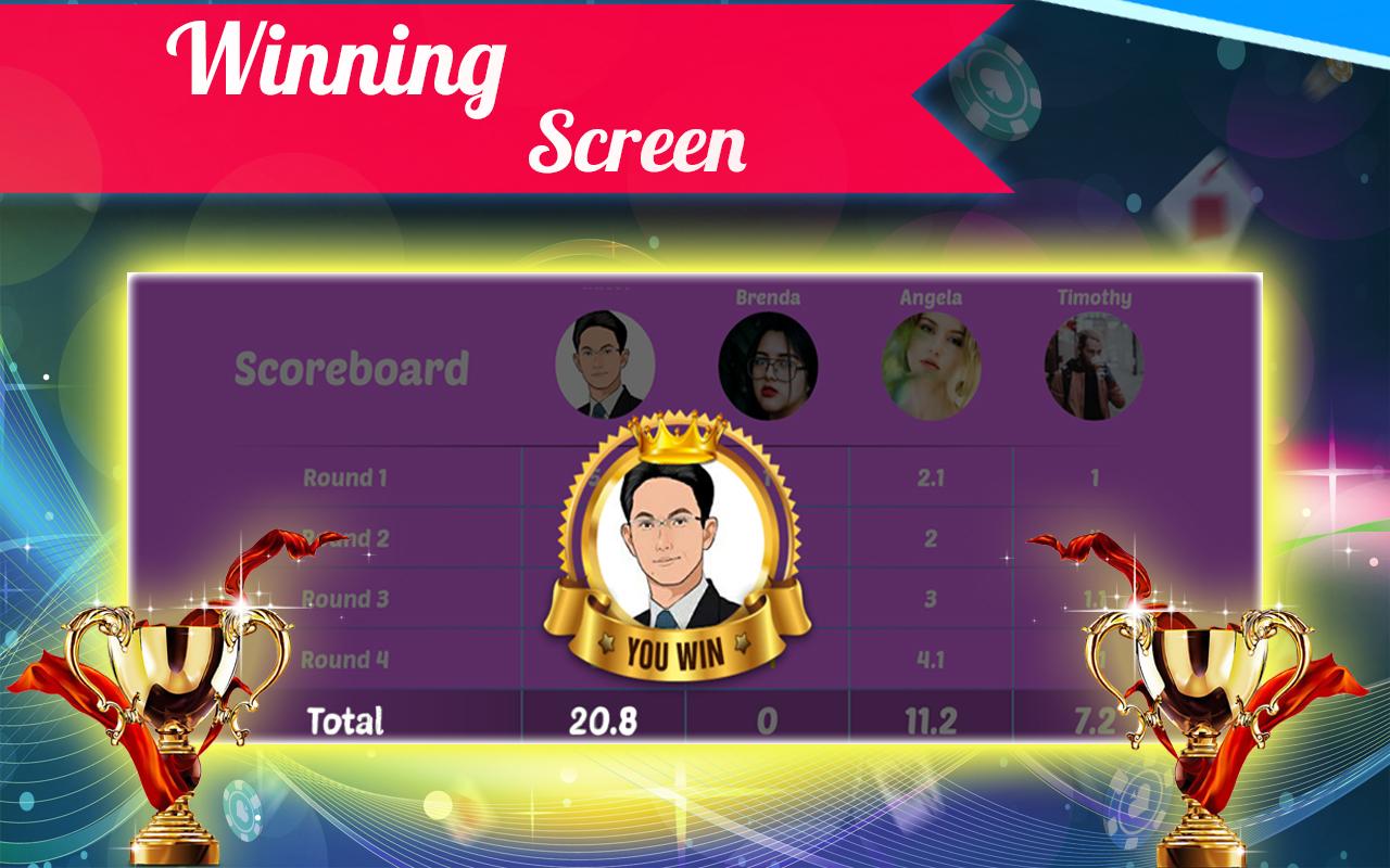 Game End: At the end of fifth round the winner will be decided, player with higher total points will win the game.