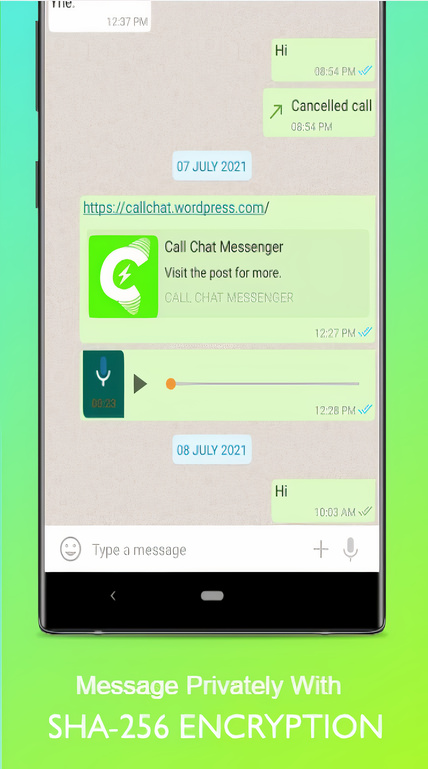 We ensure your messages and audio/video calls to be kept confidential by providing SHA-256 ENCRYPTION. In case you got a message sent to wrong person CALLCHAT helps you to RECALL your message at any hour and also to EDIT MESSAGE if needed.