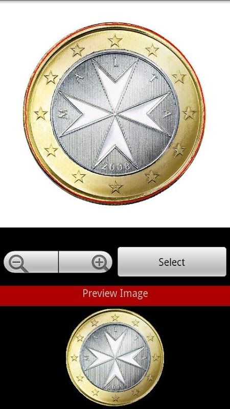 You crop your own Custom coin out of the selected image by moving the red selection circle and by using the zoom controls. Once you are satisfied with your coin, Select it, Rotate it if you wish, and Save Image. Your custom coin is now available to be selected as a Head or a Tail.