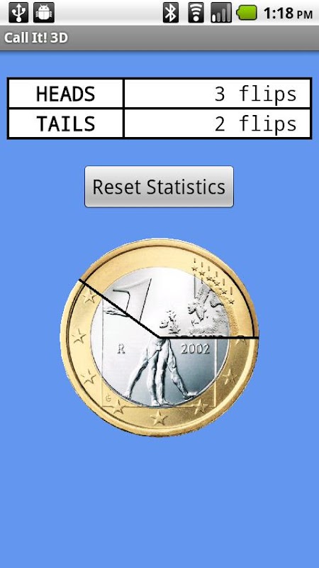 Call It! 3D is a coin flipping application with realistic 3D animation! You can independently choose the heads or tails faces from a pre-created set of high quality coins (including Euros), or you can create your own Custom Coins! Either shake or flick the coin to start spinning!