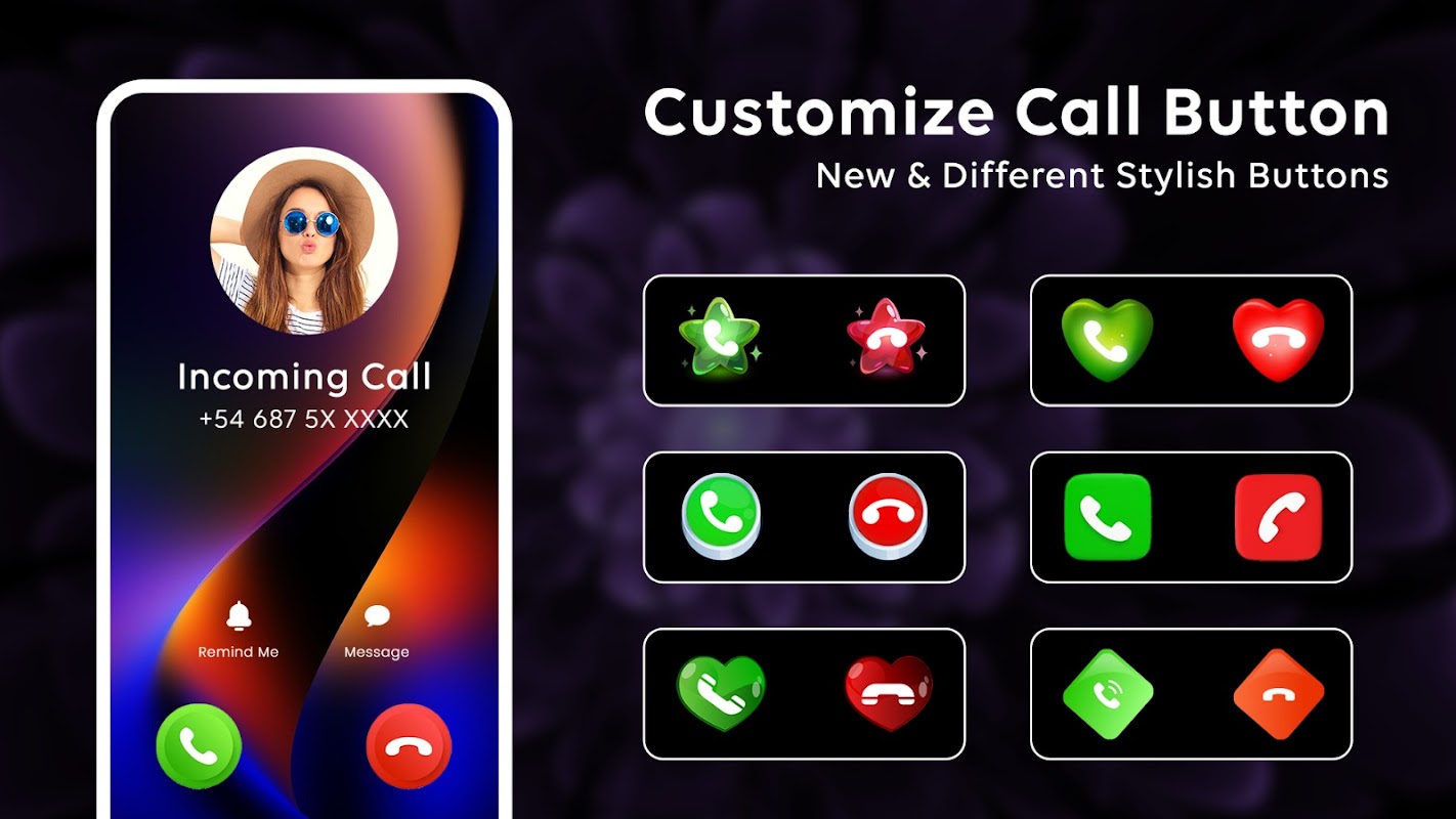 Users can customize call and turn answer buttons by choosing their favorite buttons from collection of buttons. Cute and cool button available for customize user call screen theme.