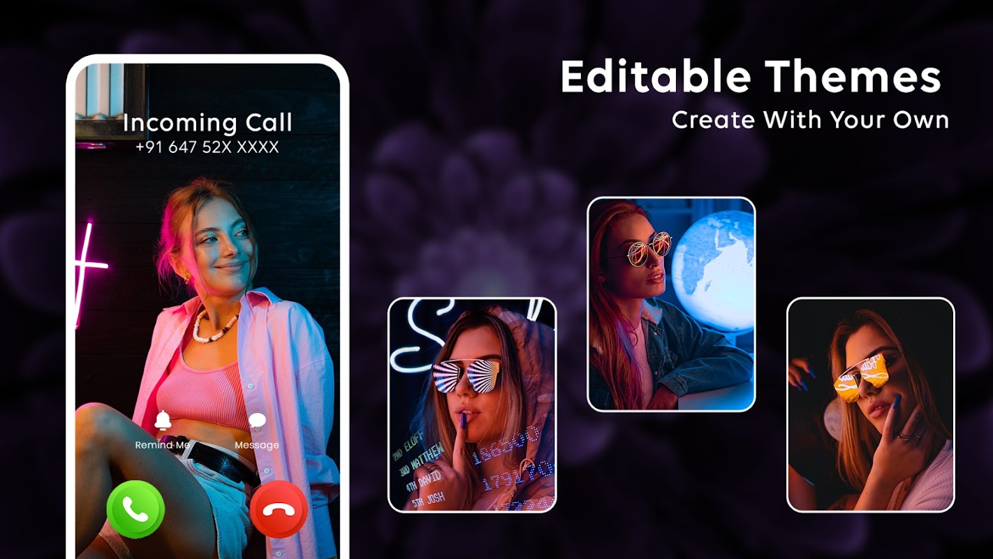 Install call screen theme App to have stunning and stylish color caller screen themes, color your phone screen with and enjoy every incoming call to your phone.