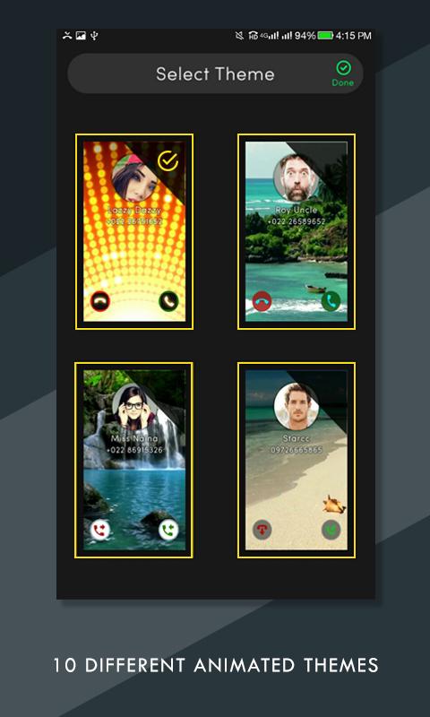 A caller screen changer app that allows you to customize your caller screen to Animated Neon Flash Light Color Themes. Make your calling screen stand out differently. A unique style and design to to receive incoming calls. Choose from many different animated neon color calling screen themes, Customize themes for different callers, different themes.