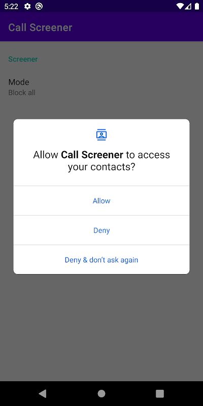 When a mode is selected, the app prompts for the necessary permissions. With permissions granted, it is all set!