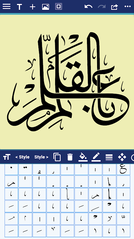 - Edit the Text, Tashkeel, Shapes, and Glyphs as a path (full Edit Path features available as In-App Purchase).