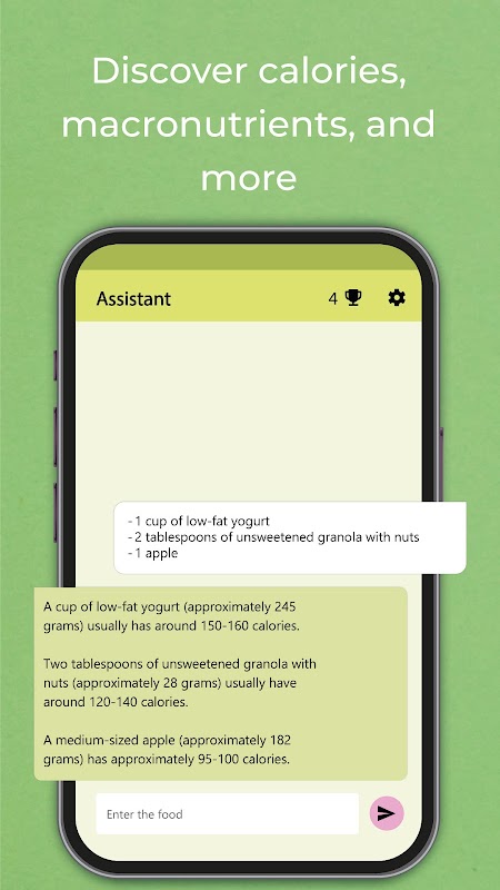 Then, in the chat, enter your daily nutrient intake and let the calorie counter do the rest. The app will provide you with a detailed summary of your daily protein, carbohydrate and fat intake, as well as other important nutrients such as vitamins and minerals.
