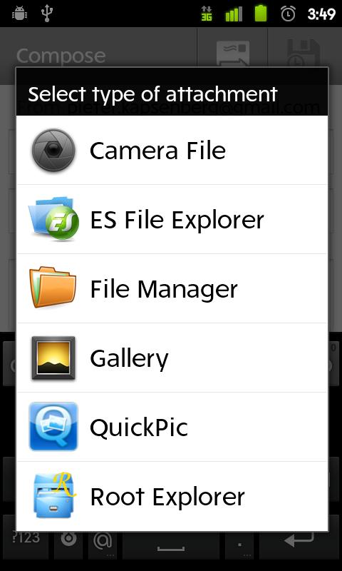 Camera File simply adds an option to the attach menu to take a picture right there and then! It will actually work for any app that ask you to choose a file. Very simple, very free!