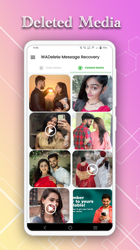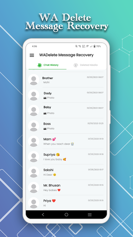 Chat recover app helps you to get back lost files with recover deleted media. Recover photos with WA deleted messages recovery app and undelete files.