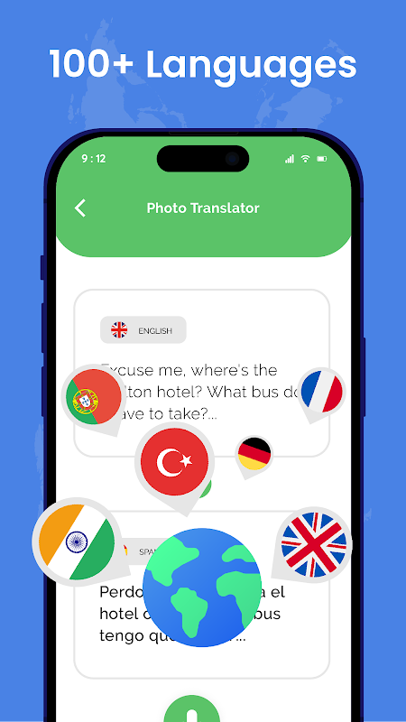 Use phone's camera to scan & translate text in photos. Text & Voice Translate.