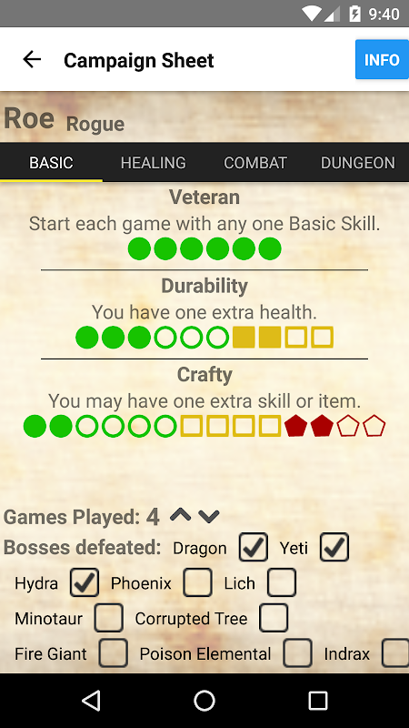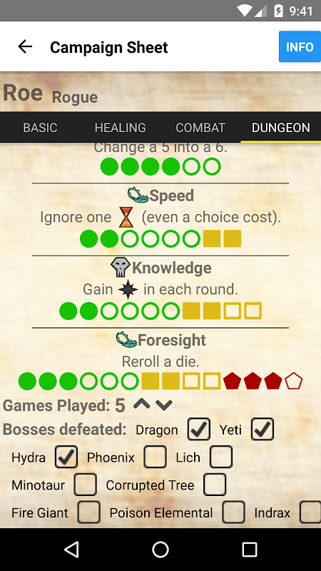 Track your Hero's progress with this digital Campaign Sheet for One Deck Dungeon.