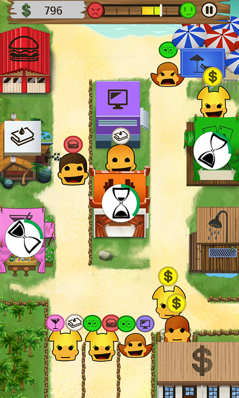 Your camp attracts loads of tourists! Guide your customers according to their needs to the different amenities like the bar, the restaurant or the gym… but don’t hang around!