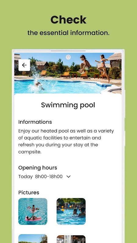 Find all the information you need at any time, even before you arrive at the campsite: campsite opening times, bar/snack bar opening times, water park opening times, site map, services on offer, cleaning instructions before you leave... in short, it's all there!