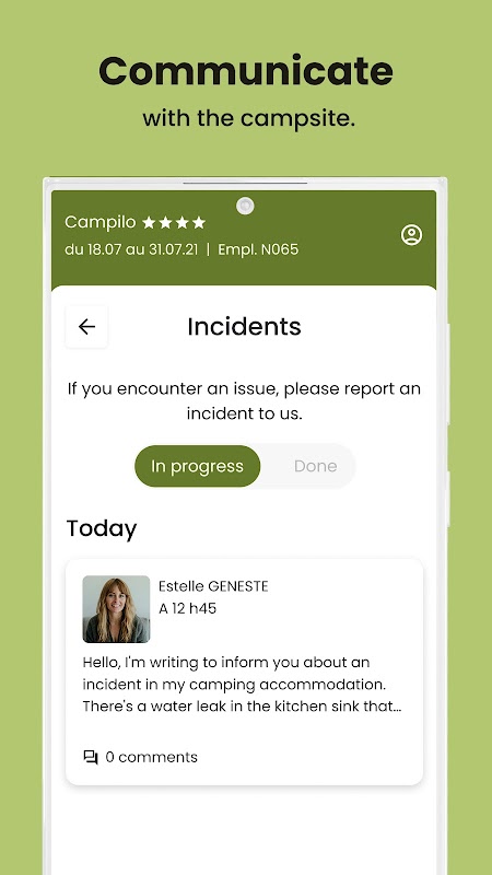 During your stay, do you notice that a light bulb is no longer working in your accommodation or that a chair is missing from your terrace? Notify the campsite teams using our incident reporting service and follow the progress of your request until it's resolved.