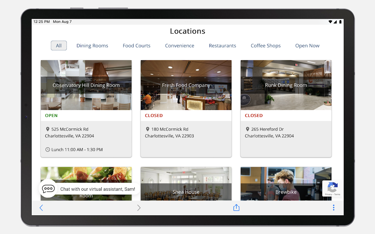- Our interactive menus let you see what’s being served for each meal, filter your menu to find vegetarian and vegan options or avoid allergens, and much more.