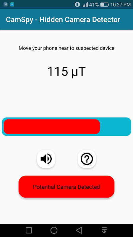 CamSpy - Hidden Camera Detector app is a tool to help you find hidden camera lens that you suspect are present in the room. Our Hidden Camera Detector CamSpy tries to detect Hidden Cameras and spy devices using your phone's magnetometer sensor. If the magnetic activity seems similar to that of a hidden camera or microphone, CamSpy Hidden Camera Detector will beep and warn you so that you can manually inspect the area for any unusual activity.
