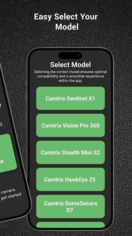 This app has been made compatible with most Camtrix camera models. Using the Camtrix Camera