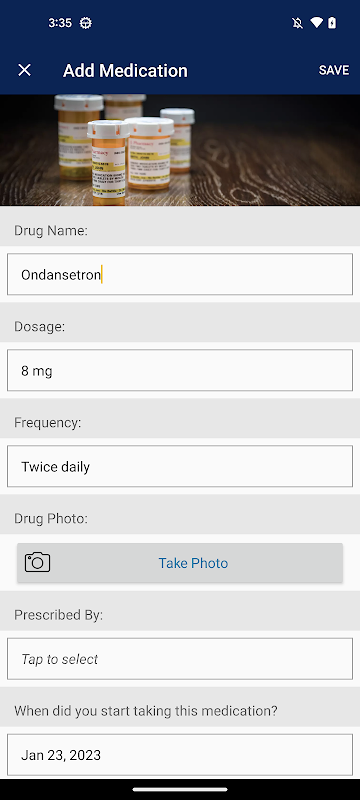 - Medications: Record dosage, frequency, and prescribing provider. Set reminder notifications, and log when you take your medication.