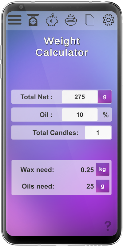 Easily calculate your candle weight for as many candles as you need.