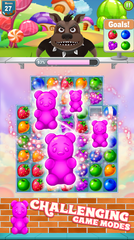 🎮 variety of sugar sweet challenges – all new game modes including minimum Score, collect special trapped gummy bears, and many more as you defeat bosses to save the candy kingdom and Enjoy addicting levels while playing addicting match 3 candy game saga .