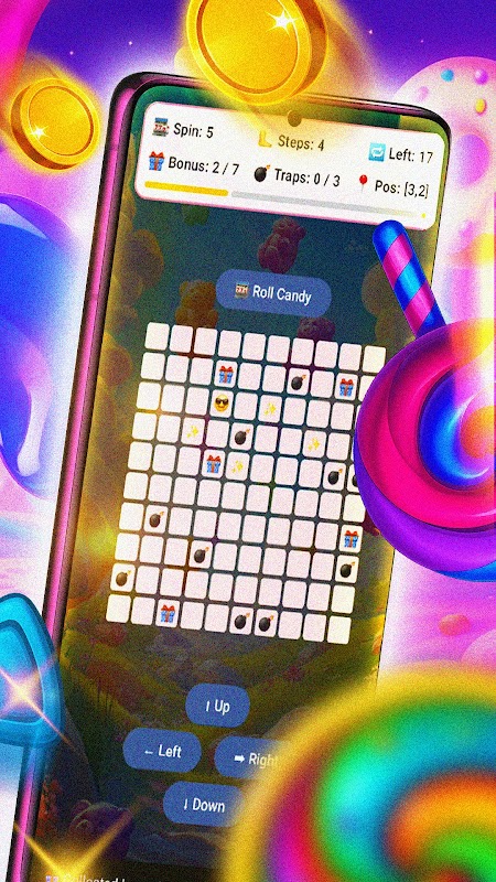 Candy Twist Dash blends strategic puzzles with slot‑style twists: roll the wheel to earn steps, bonuses, or surprises as you navigate a vibrant 10×10 sugar-coated maze. Dodge traps, collect all rewards, and reach the exit before your rolls run out!