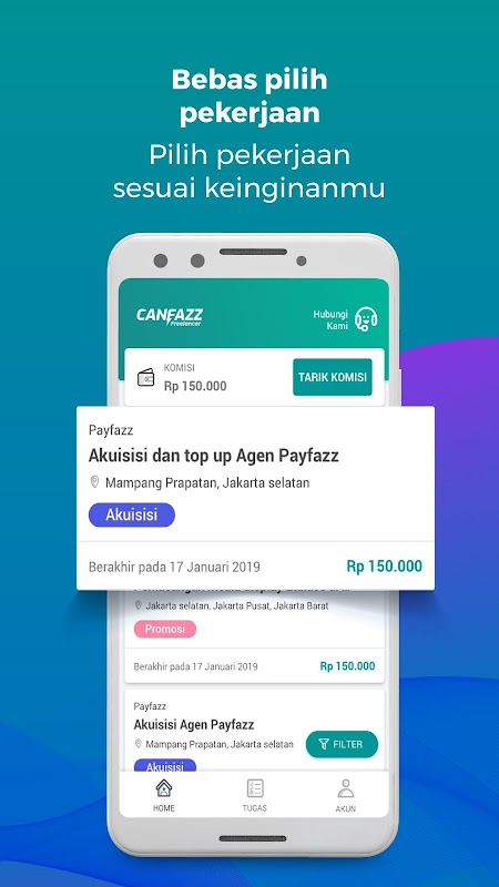 Canfazz Freelancer adalah aplikasi yang akan membantu kamu untuk mendapatkan kerja sampingan. Semakin banyak pekerjaan yang kamu selesaikan, maka semakin banyak pula penghasilan tambahan yang bisa kamu dapatkan.