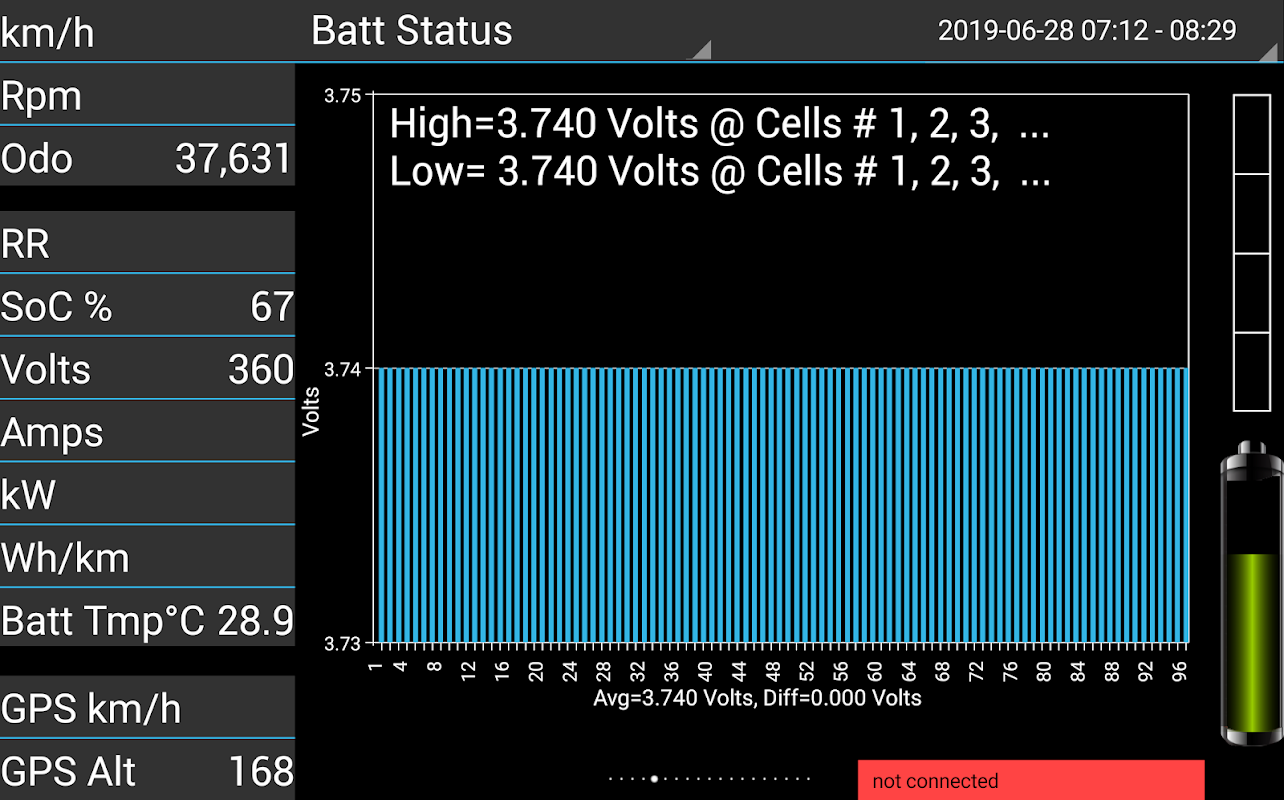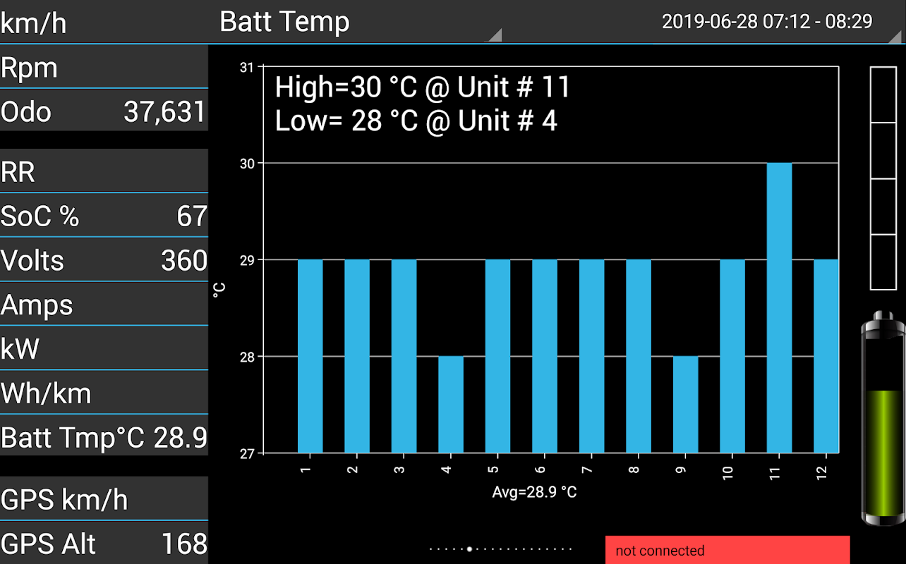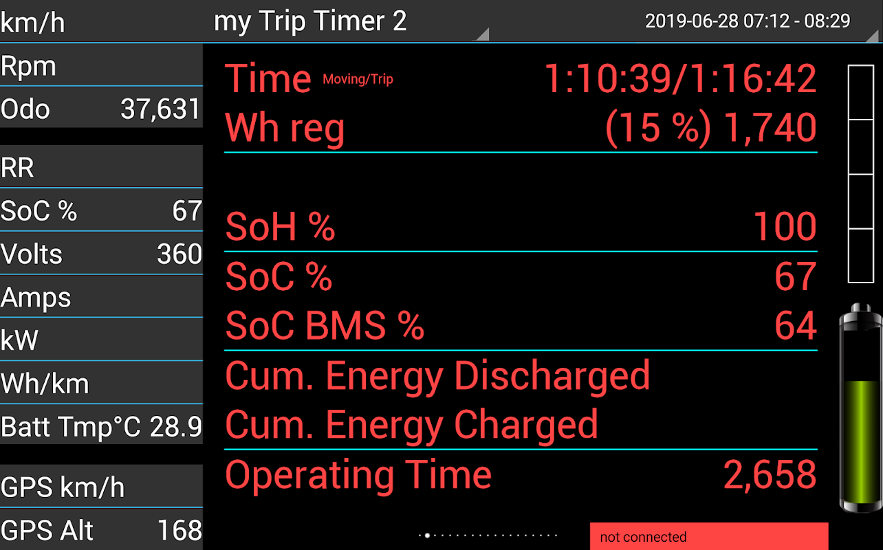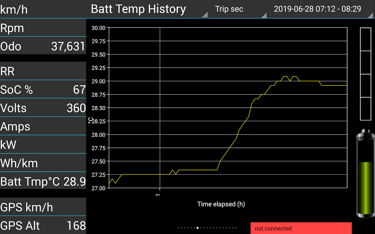 This app is used for Hyundai Ioniq electric vehicle 28kWh to store and visualize data from the cars can-bus. These data are streamed to the android device via obd-ii diagnostic interface plug and an obd-ii bluetooth/usb/wifi adapter.