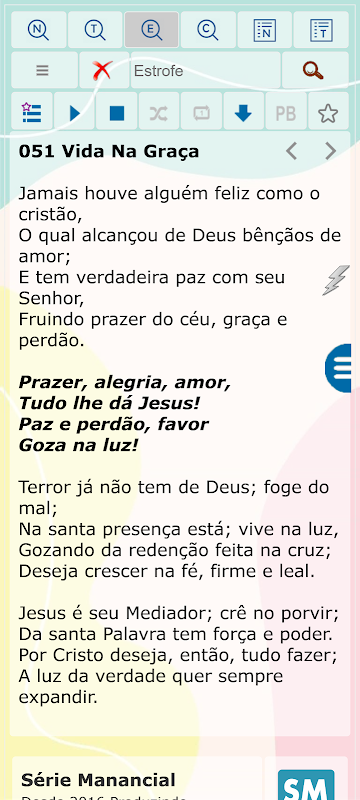 This app also features the additional online service Fonte Manancial, featuring illustrations, audio studies, verses, tips, and interesting facts. When you launch the app while online, a button will appear in the footer to access the service with hundreds of audio studies and sermons for your edification.