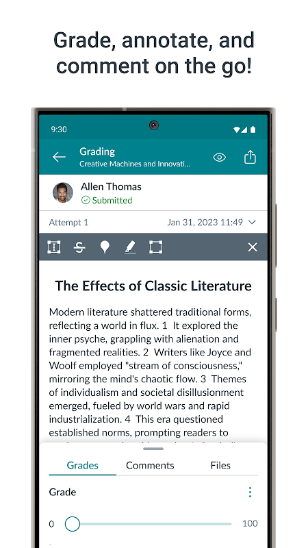 • GRADING: Browse submissions and provide feedback to your students with a new and improved mobile SpeedGrader embedded in this app.