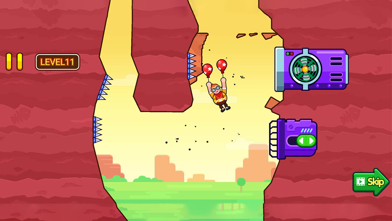 In this exciting game, you will help a little boy with a balloon break through obstacles and fly into the sky. You need to deal with various challenges, such as avoiding bees and plants that may puncture balloons, using a fan to reach a safe area, and paying attention to the spikes on the edge of the cliff. If the balloon is punctured, the journey will end prematurely. In leading this adventurous balloon journey, test your skills and reaction abilities, overcome obstacles, and reach new heights. Can you protect the balloon and complete the journey?