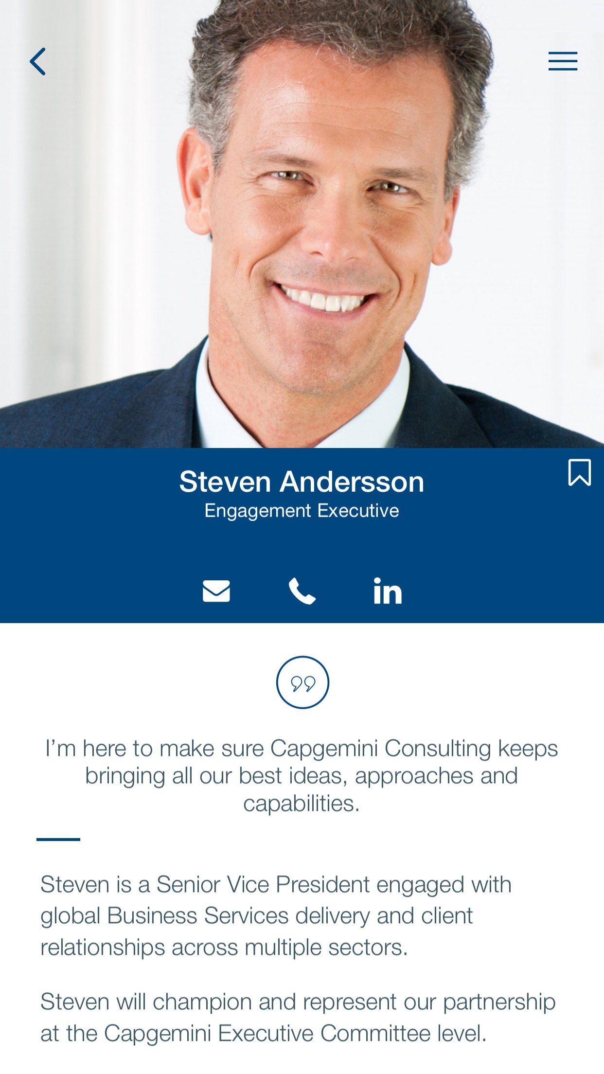 This restricted-access app allows you to discover how Capgemini will serve your business. Download the app to: