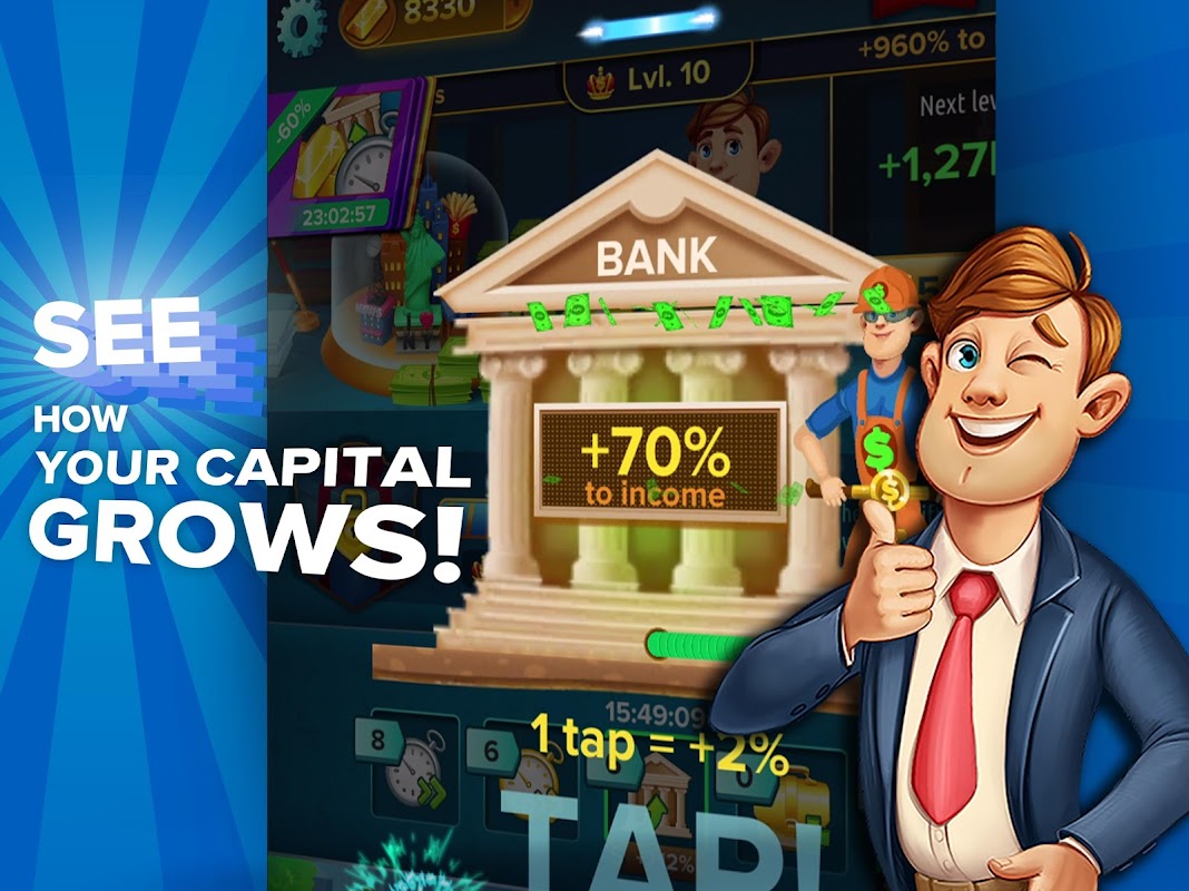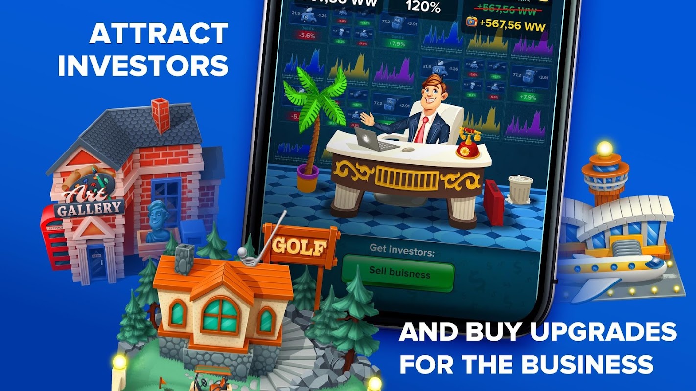 Attract investors, hire managers, and buy upgrades for the business. See how your capital grows!