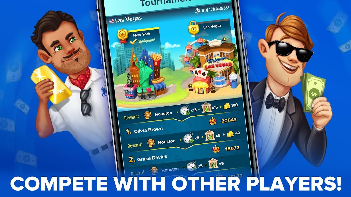 Compete with other players for the title of Biggest Moneybags in New York, Paris, and other cities!!!