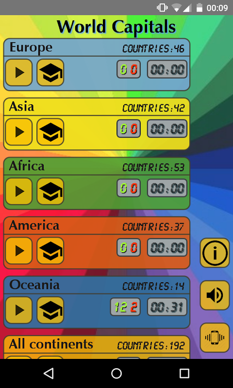 Improve your knowledge of geography and learn the capitals of the countries around the world. The quiz contest format will make you have a fun time. Eventually you will learn all the answers effortlessly. Are you ready to guess the capitals?