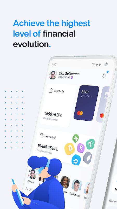 Enjoy banking services of a truly digital account with CapAccount. Unlimited transfers, guarantee of the Treasury Financial Bills (LFT), salary portability, zero fees. And it doesn't stop there!