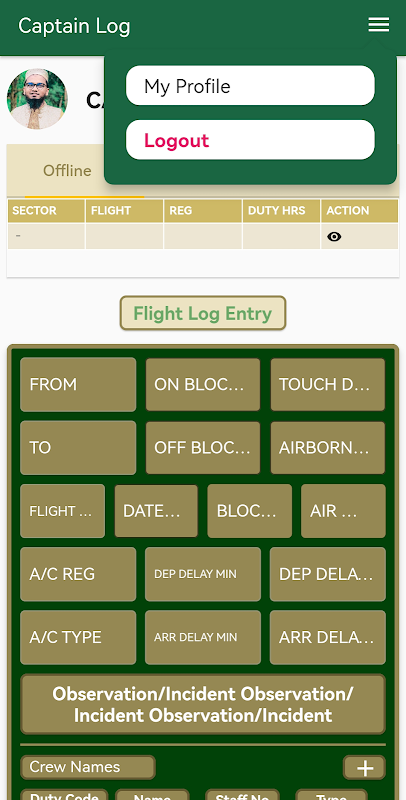 Captain Log Sheet of Each Flight