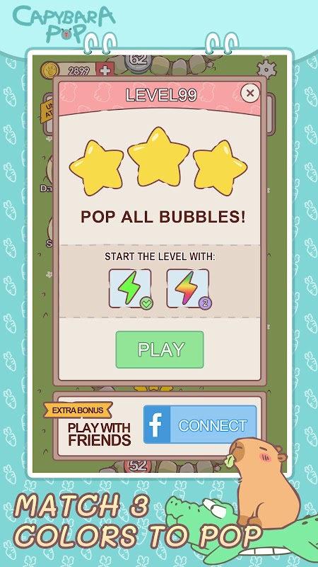 Take the cute and friendly Capybara on an adventure with our bubble shooter! We have over 5000 levels and each level has a different challenge of fun and strategy to exercise your brain and keep you entertained!